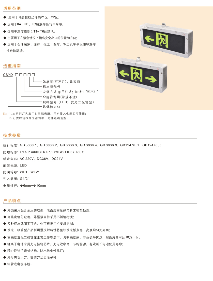 CBYD系列防爆消防應(yīng)急標(biāo)志燈具(IIC tD)(II型)